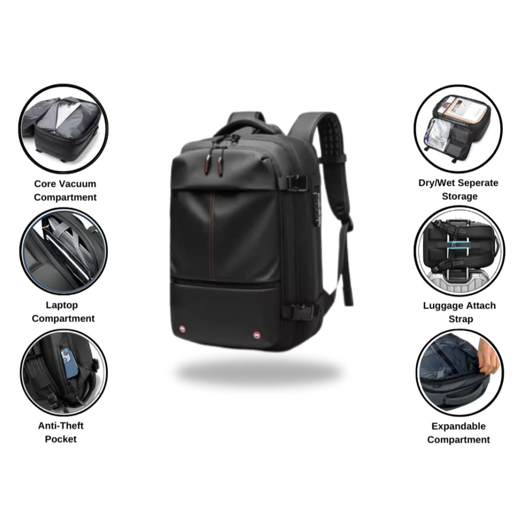 You shouldn't face any issues bringing our backpack on the plane. Our vacuum sealing technology in the backpack is fully compatible with TSA regulations and airlines rules and regulations. It functions without any batteries or electrical components, making it safe for air travel. Plus, its compact and efficient design fits easily into overhead compartments or under the seat, ensuring a comfortable and hassle-free travel experience. However, it is always best to check with the airlines prior to your journey.